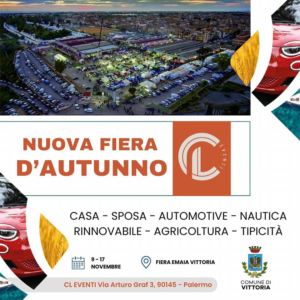 CL Eventi è orgogliosa di seguire e coordinare la Nuova Fiera d'Autunno a Vittoria, la più grande fiera d'autunno della Sicilia. Dal 9 al 17 novembre, presso Nuova Emaia Città di Vittoria (RG), vi aspetta una manifestazione imperdibile patrocinata dal Comune Di Vittoria.